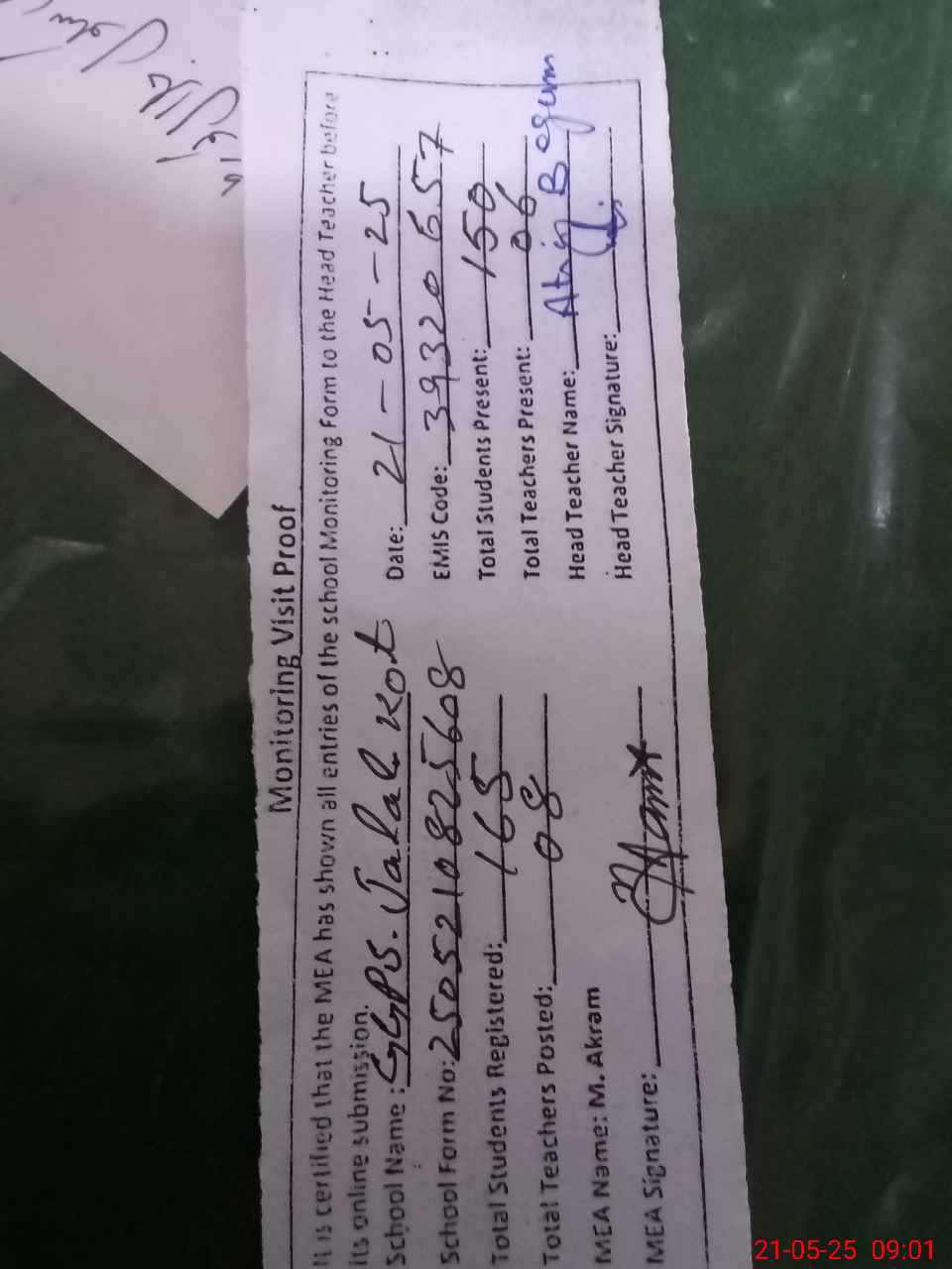 | EMIS Code: 39320657 | Name of School: GGPS JALAL KOT OKARA | |||