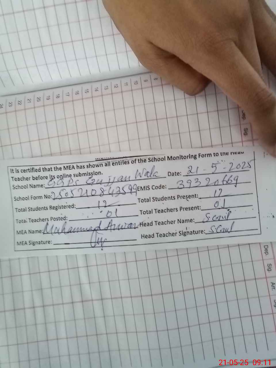 | EMIS Code: 39320669 | Name of School: GGPS GUJJAN WALA | |||