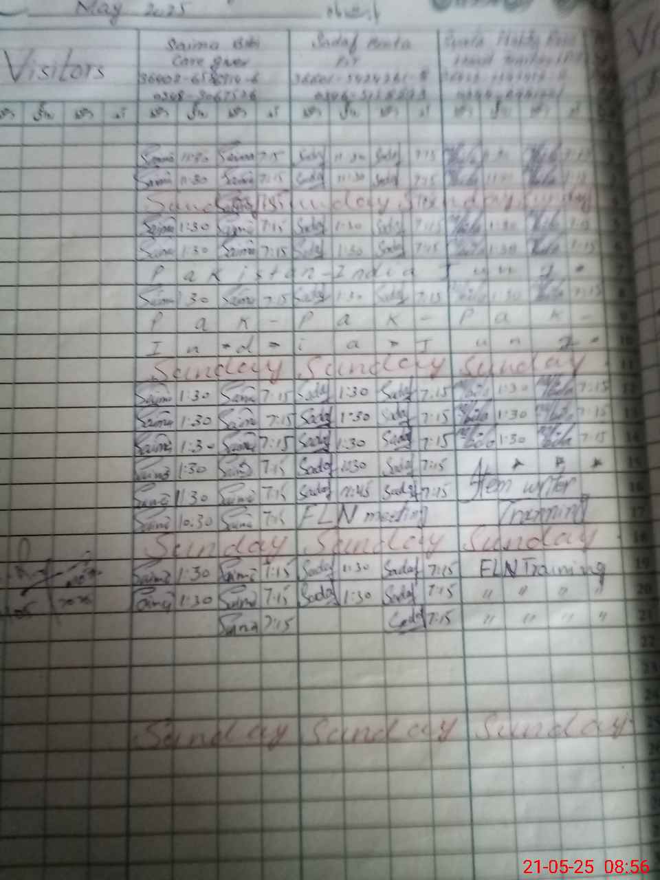 | CNIC | Full Name | Designation | R/C | Absence during last cal. month |