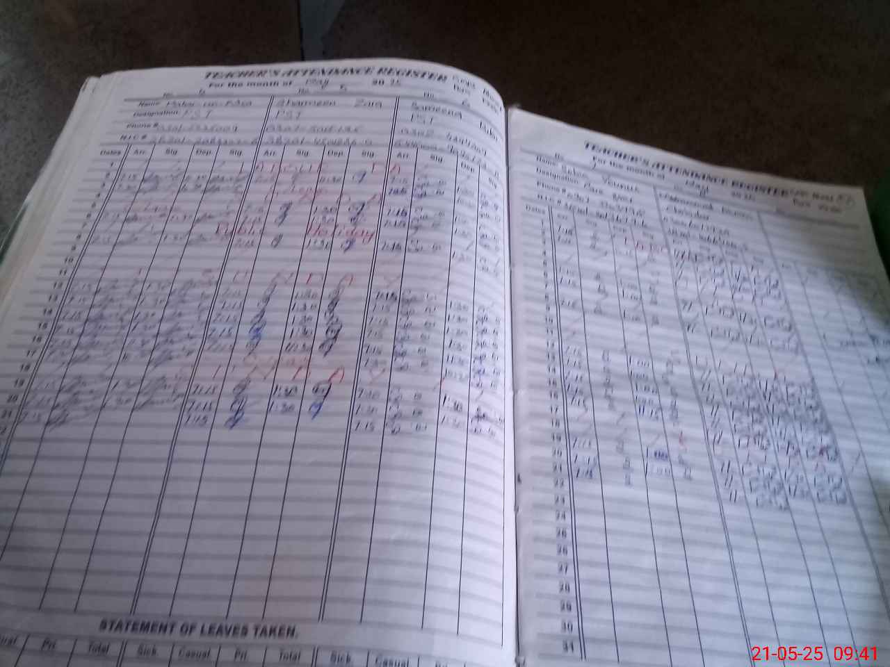 | CNIC | Full Name | Designation | R/C | Absence During Last Calender Month |