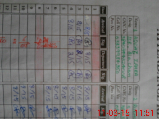 | Monitoring Date: 11-03-2015 | Start Time: 11-03-2015 11:20 AM | End Time: 11-03-2015 11:57 AM | Name of MEA: MU**** IR**** (R**** | |