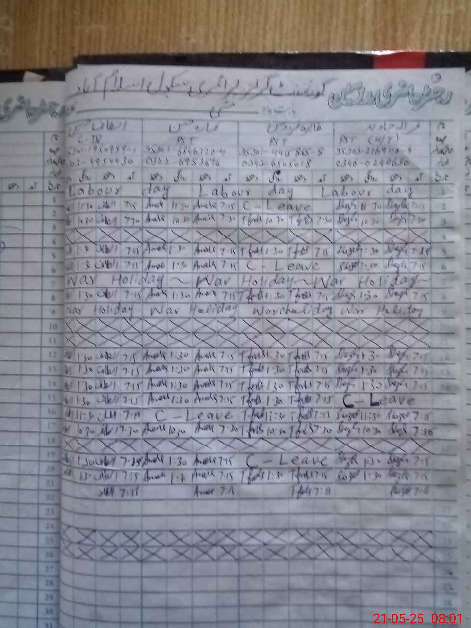 | Leave | Duty | Absent | Maternity | Medical | Ex- Pak |