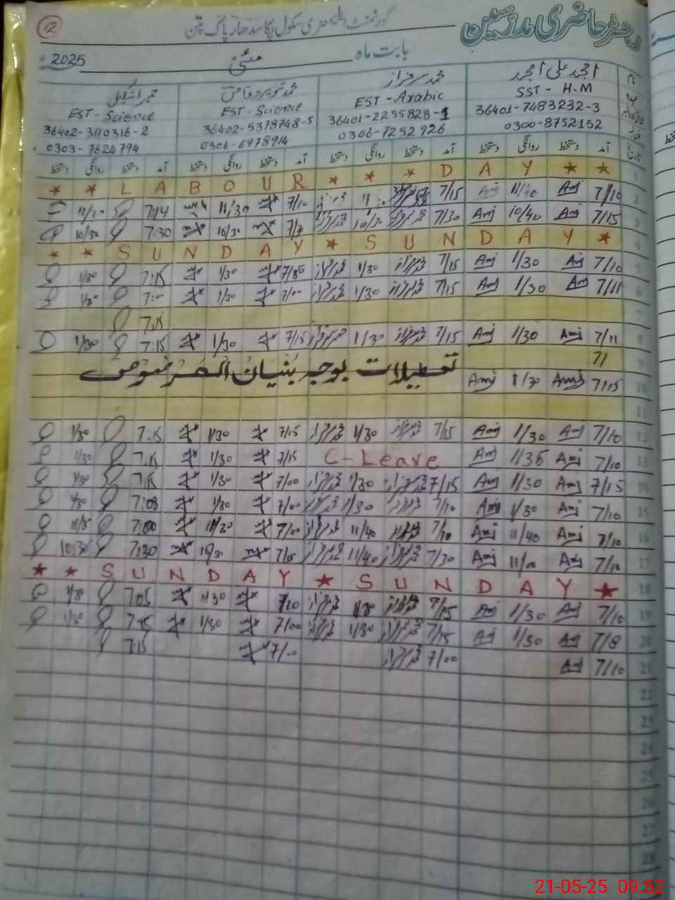 | Name: AM**** AL**** AM**** Designation: (School Headmaster's/Headmistress's) SST(SCI) Phone/Cell Number: 03**** |