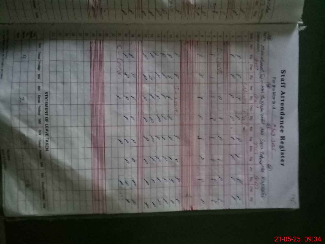 | No. of Students Present - Female | 6 | 0 | 37 | 80 | 60 | 60 | 90 | 70 | 160 | 140 | 107 | 198 | 161 | 1169 | ||