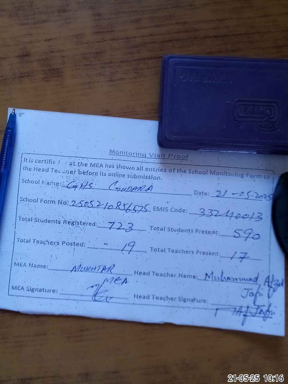 | EMIS Code: 33240013 | Name of School: GHS GUDARA | |||