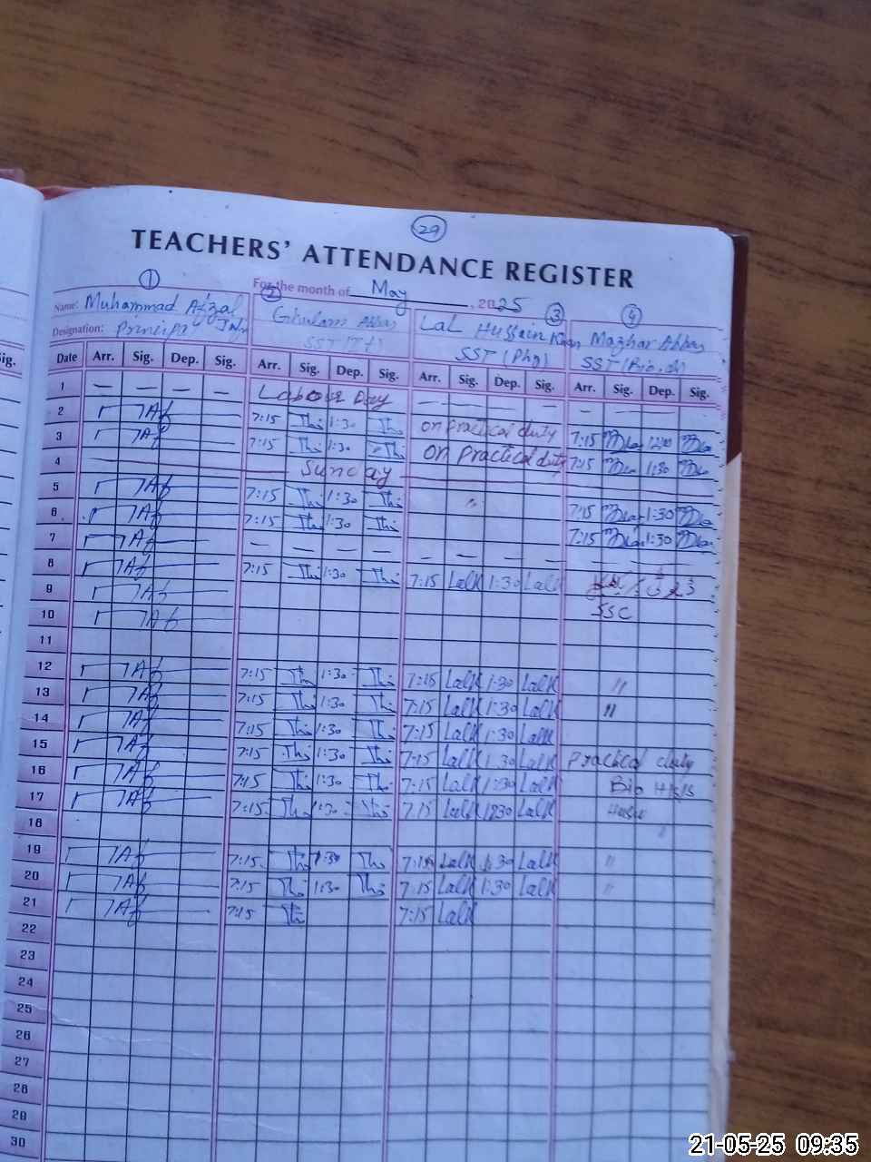 | 33**** | Ma**** Ab**** Kh**** | SST | Regular | 0 | 0 | 0 | 0 | 0 | 0 | 0 | 0 | 0 | Exam Duty |