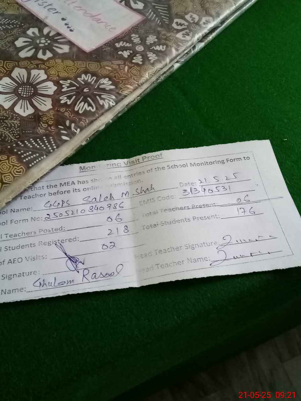 | EMIS Code: 31340531 | Name of School: GGPS SALEH MUHAMMAD SHAH | |||