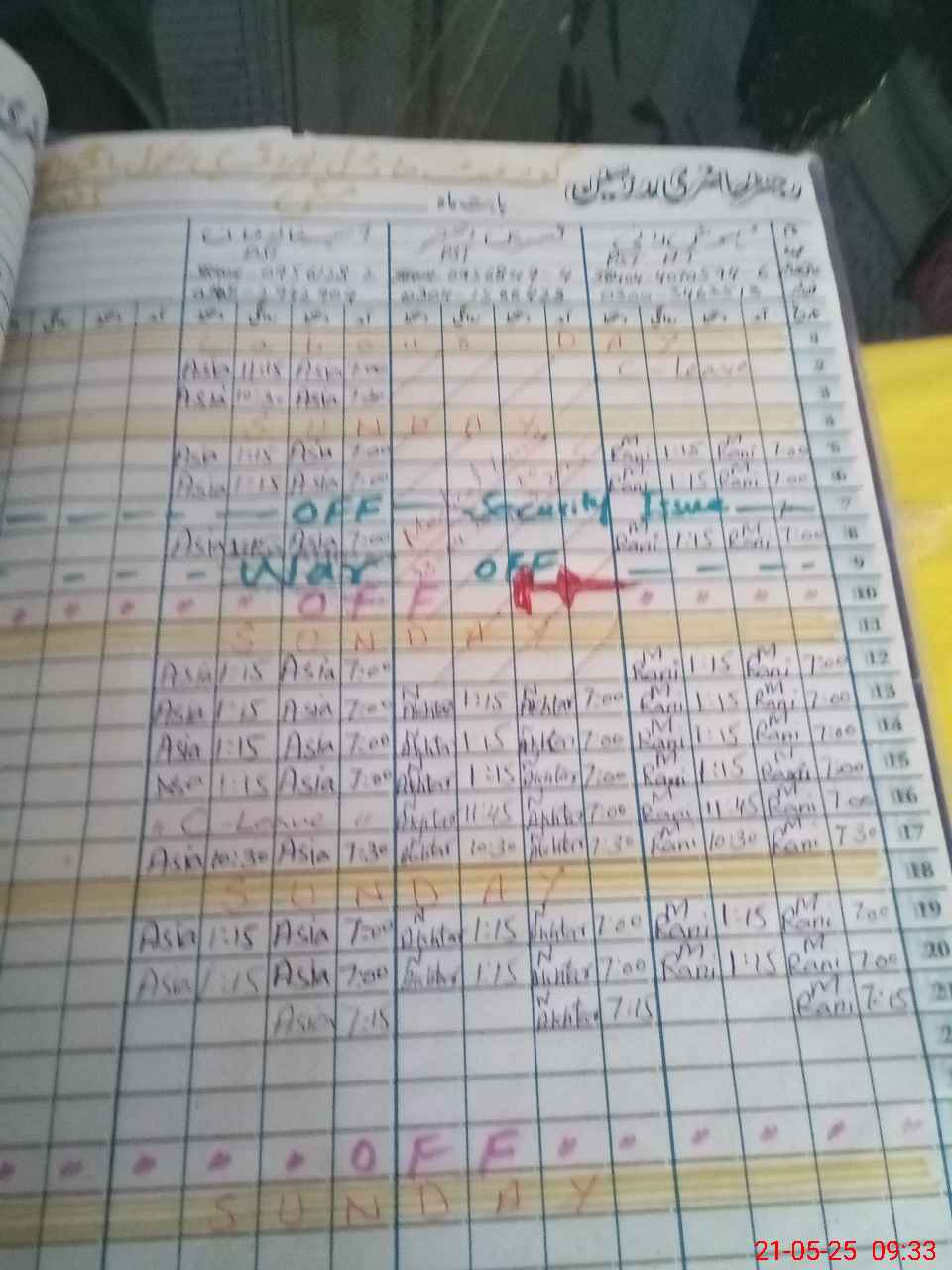 | Leave | Duty | Absent | Maternity | Medical | Ex- Pak |