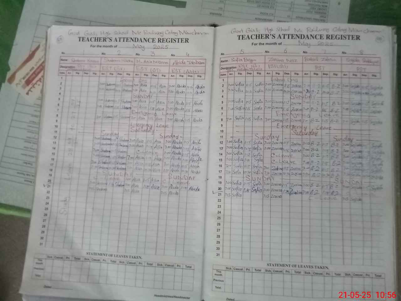 | 38**** | Ha**** Ul**** Kh**** | S.S.T.(SC). | Temporary | 0 | 0 | 0 | 0 | 0 | 0 | 0 | 0 | 0 | Absent (Un-Authorized) |