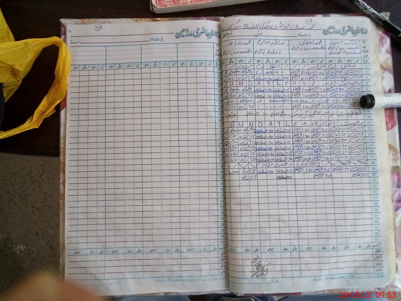 | CNIC | Full Name | Designation | R/C | Absence During Last Calender Month |