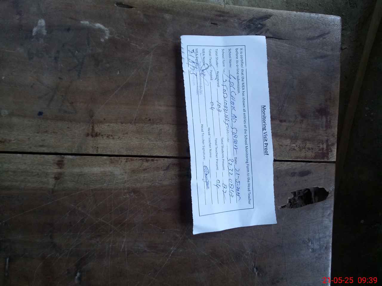 | Attendance Register | Head Teacher | MEA with School | Visit Proof |