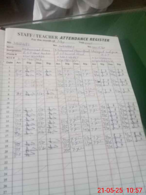| CNIC | Full Name | Designation | R/C | Absence During Last Calender Month |