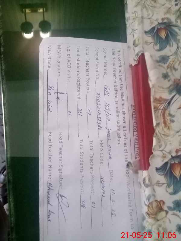 | Certified that this School was Inspected by the Undersigned MEA/DMO Today and the Information Stated Above is as Per Record. | |||||