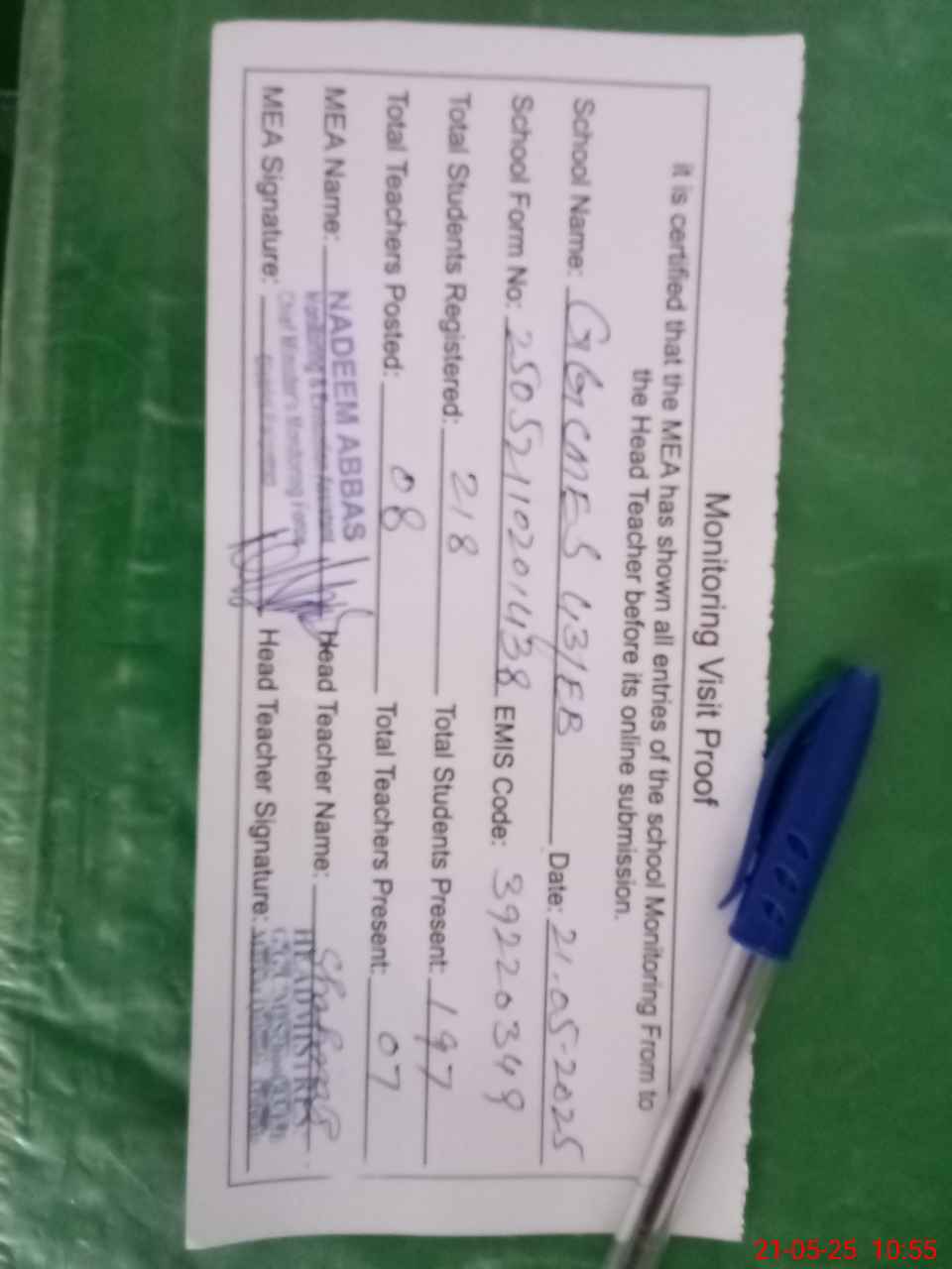 | EMIS Code: 39220349 | Name of School: GGCMES 43 EB P/O KOT KHUDA BUKHSH | |||