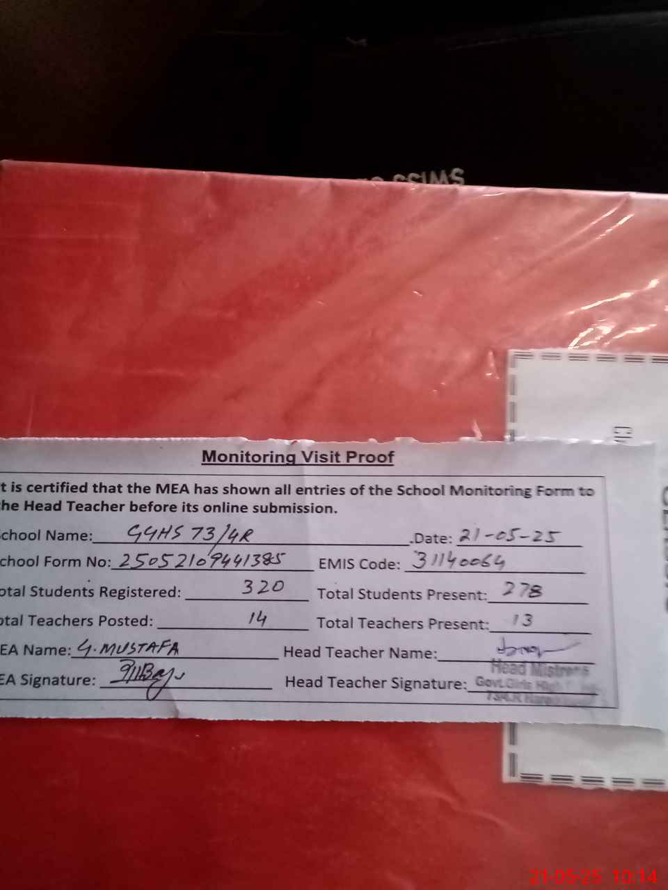 | EMIS Code: 31140064 | Name of School: GGHS CHAK NO. 73/4-R | |||