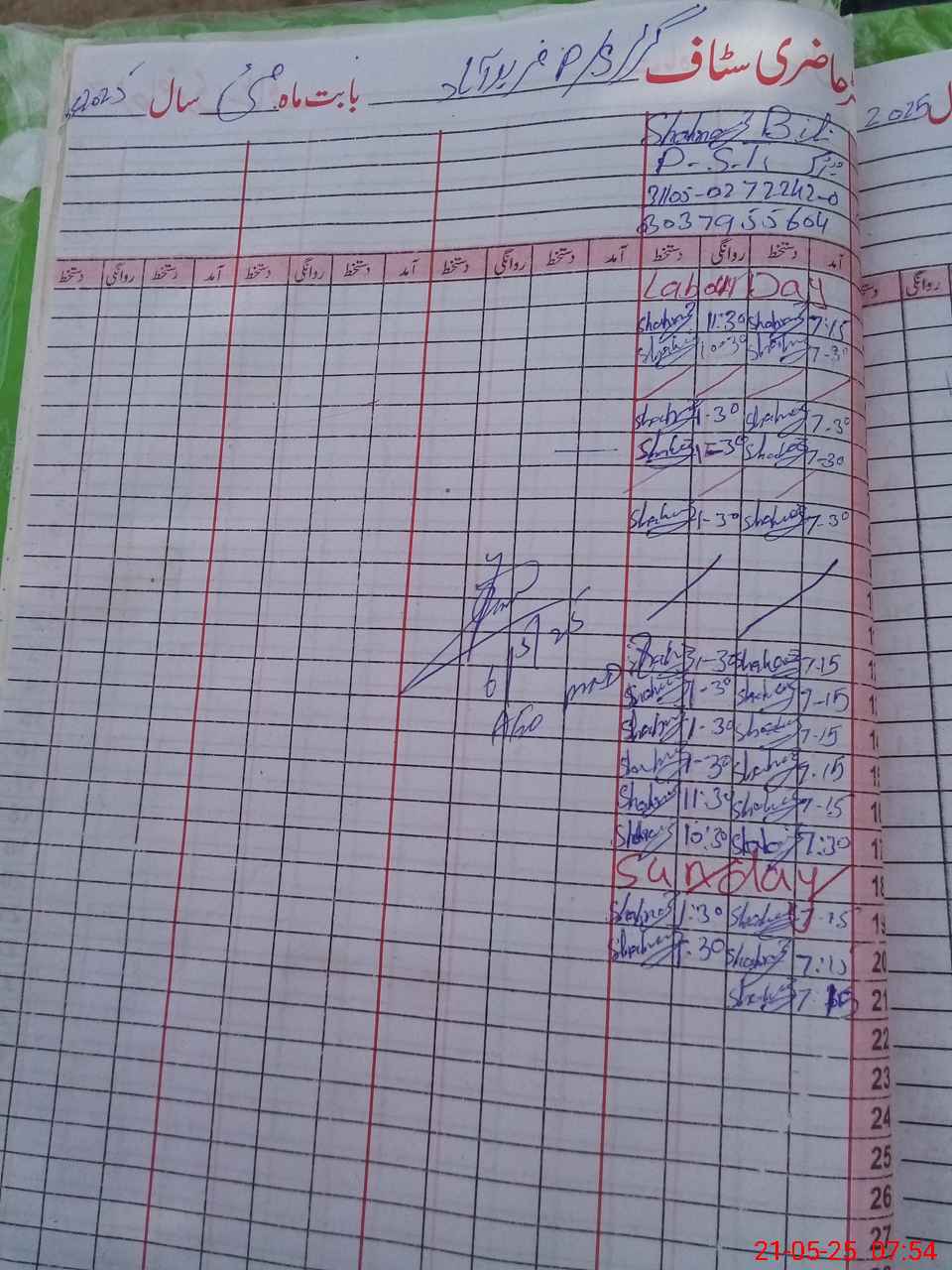 | CNIC | Full Name | Designation | R/C | Absence During Last Calender Month |