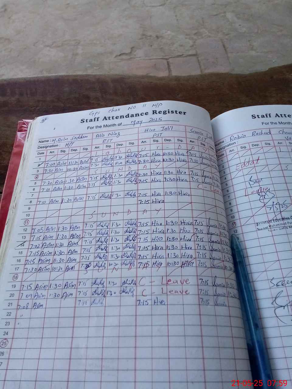 | CNIC | Full Name | Designation | R/C | Absence During Last Calender Month |