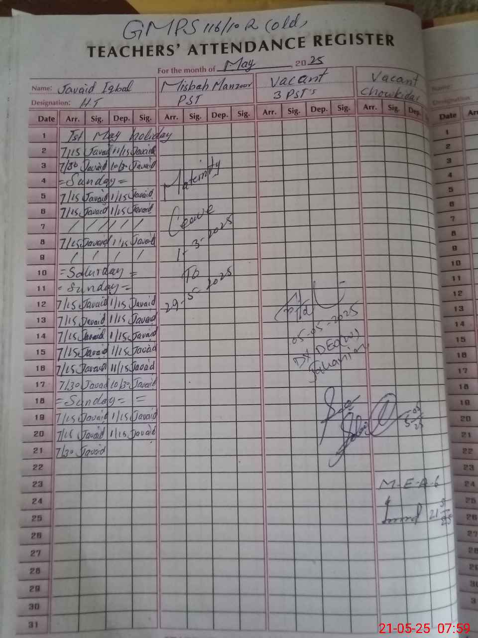 | Name: Fa**** Qa**** Designation: (School Headmaster's/Headmistress's) PST Phone/Cell Number: 03**** |