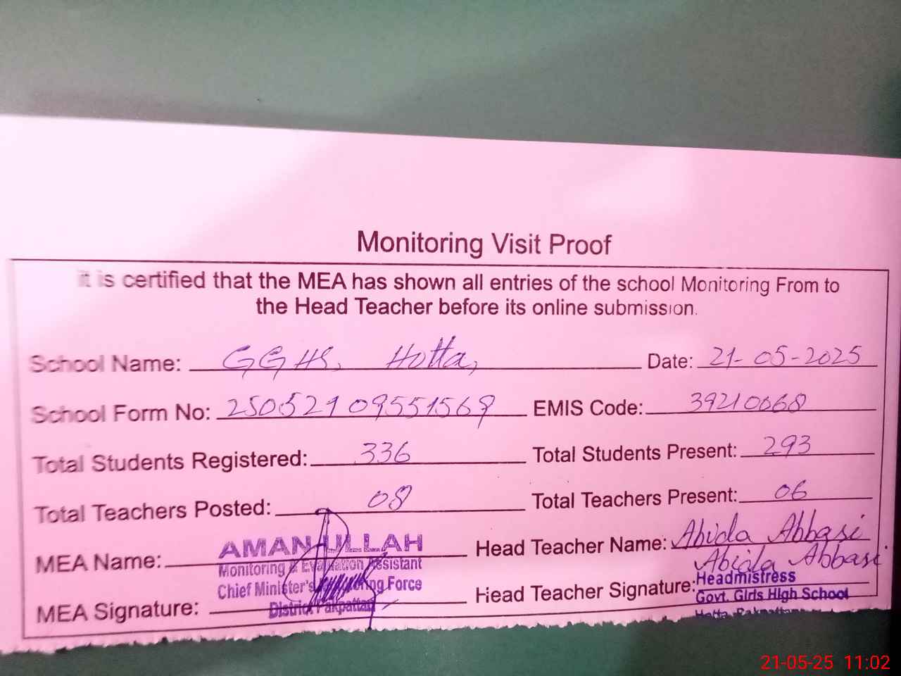 | EMIS Code: 39210068 | Name of School: GGHS HOTA | |||