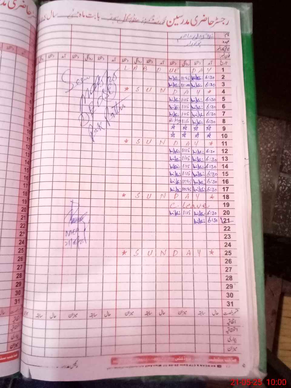 | Remarks (Use Separate Page if Required): Books record D 4 incomplt Sti Ramsha Rehman present in this school | |||||