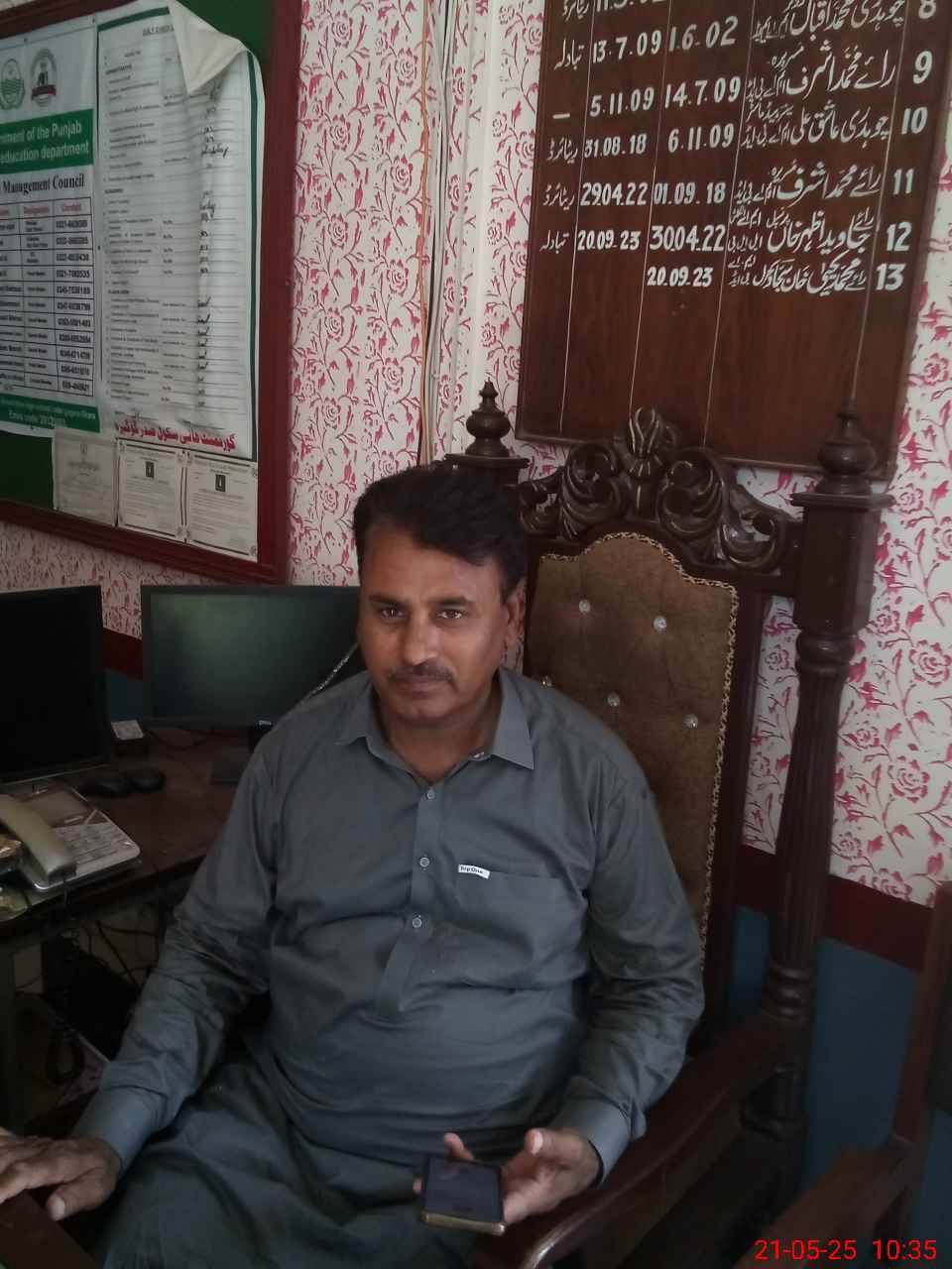 | Name: Mu**** Ya**** Kh**** Sa**** Designation: (School Headmaster's/Headmistress's) Principal Phone/Cell Number: 03**** |