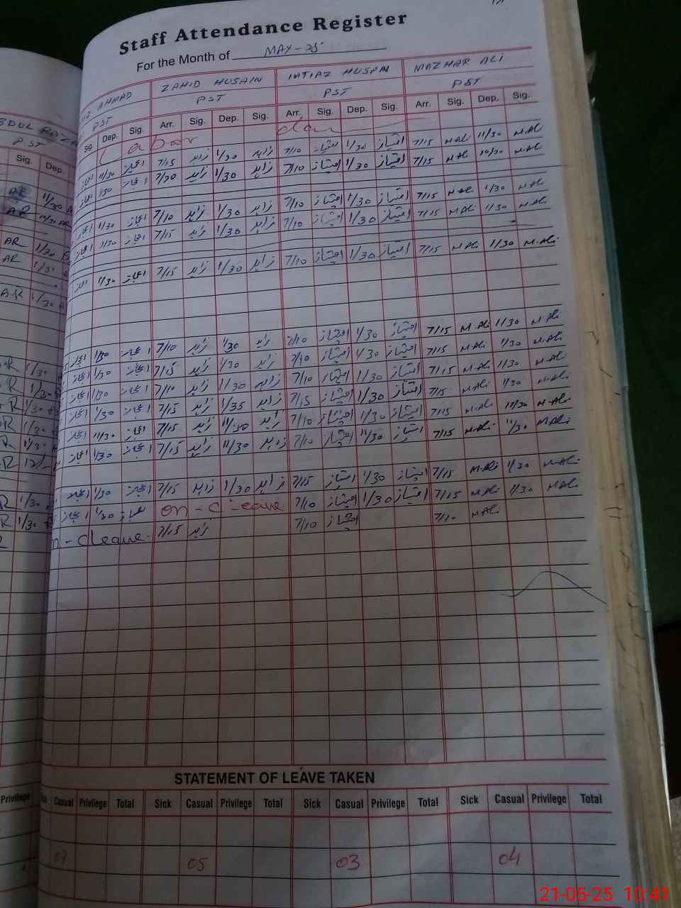 | CNIC | Full Name | Designation | R/C | Absence During Last Calender Month |