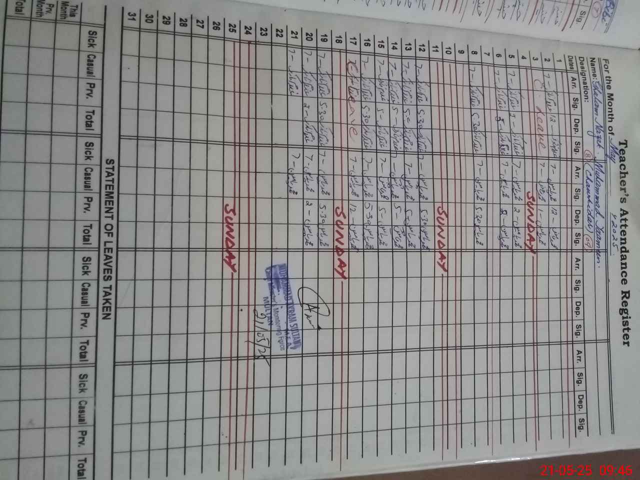| 35**** | Sa**** Na**** | PST | Regular | 0 | 0 | 0 | 0 | 0 | 0 | 0 | 0 | 0 | Exam Duty |