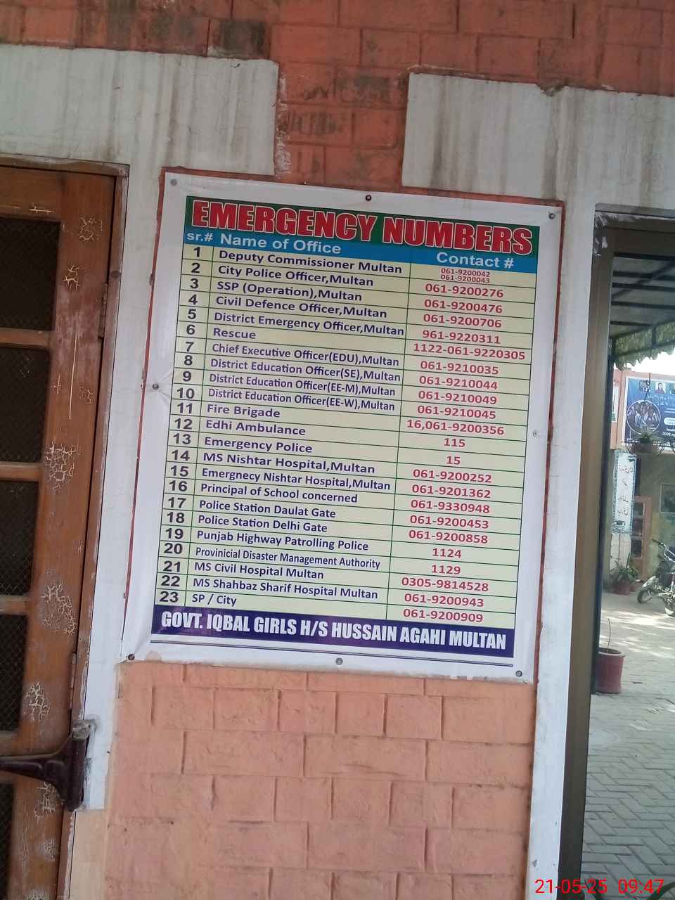 | EMIS Code: 36110032 | Name of School: GGHS IQBAL HUSSAIN AGAHI ROAD MULTAN | |||