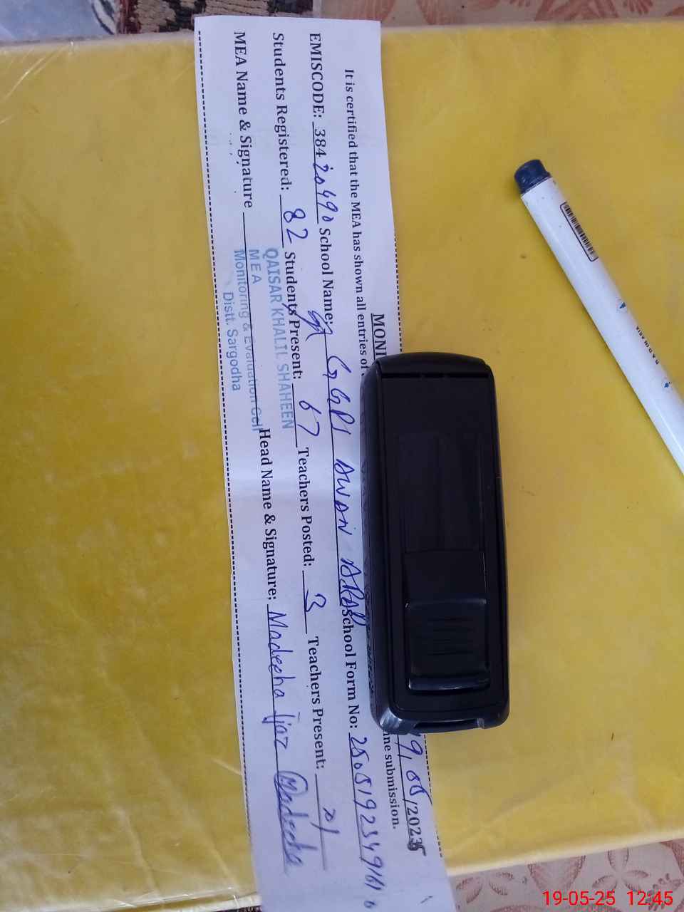 | Certified that this School was Inspected by the Undersigned MEA/DMO Today and the Information Stated Above is as Per Record. | |||||