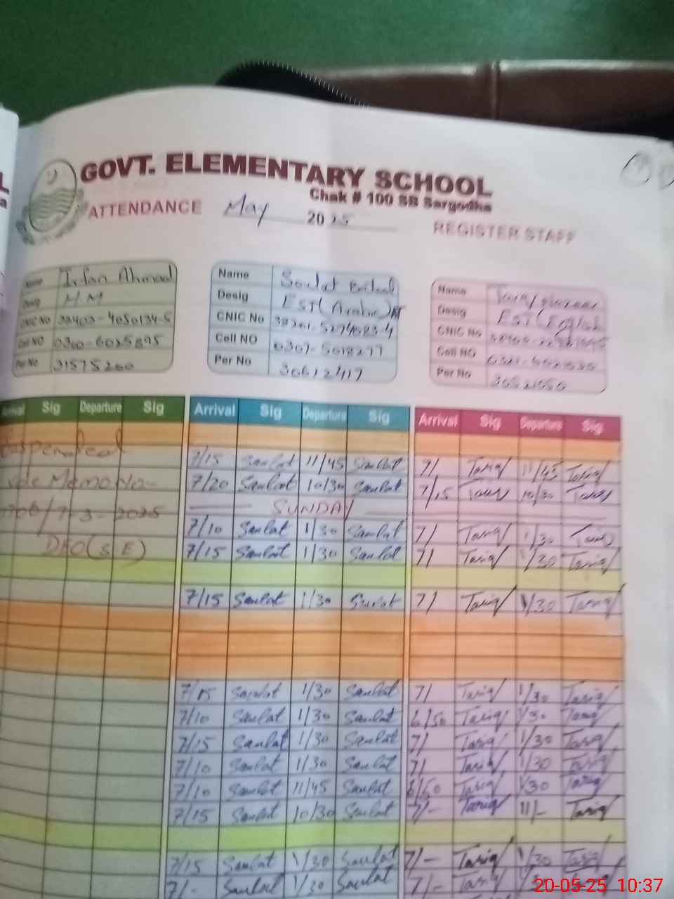 | CNIC | Full Name | Designation | R/C | Absence During Last Calender Month |