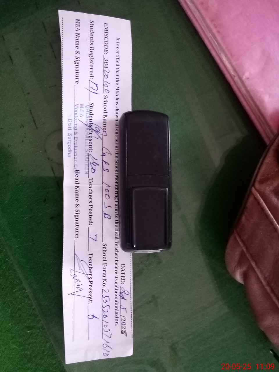 | Certified that this School was Inspected by the Undersigned MEA/DMO Today and the Information Stated Above is as Per Record. | |||||