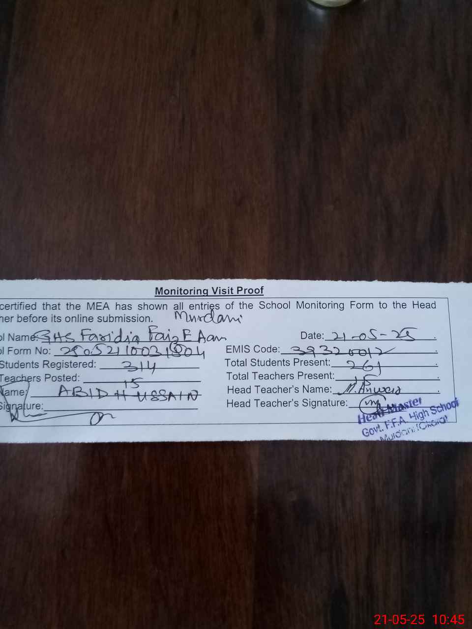 | Name: Ra**** Mu**** Sh**** Designation: (School Headmaster's/Headmistress's) HEADMASTER Phone/Cell Number: 03**** |