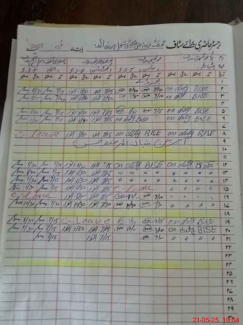 | 35**** | Ra**** Mu**** Sh**** | 8 | 1 | 0 | 0 | 0 | 0 | 0 | 0 | 0 | 0 | 0 | Exam Duty |