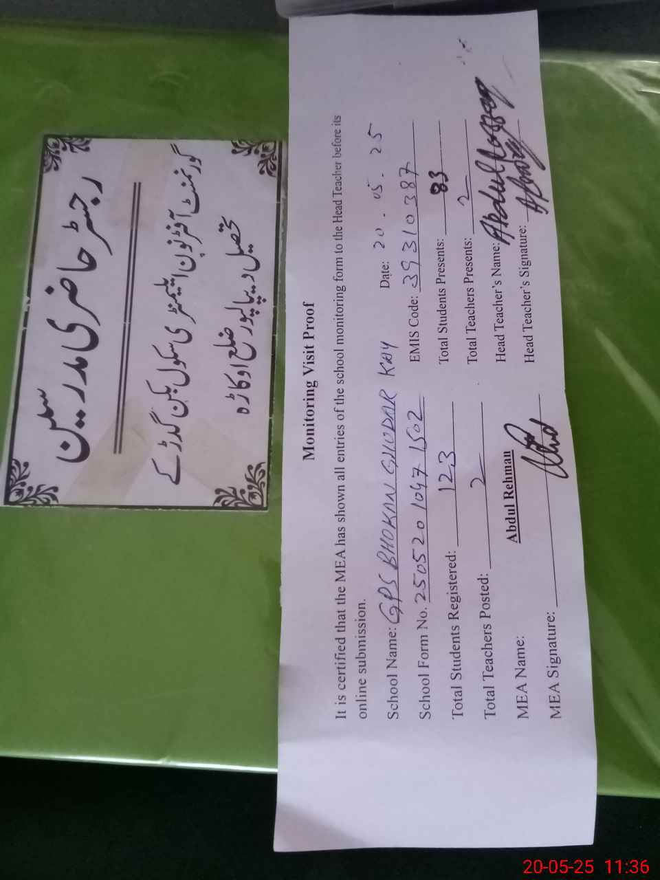 | EMIS Code: 39310387 | Name of School: GPS BHOKAN GHUDAR KAY | |||