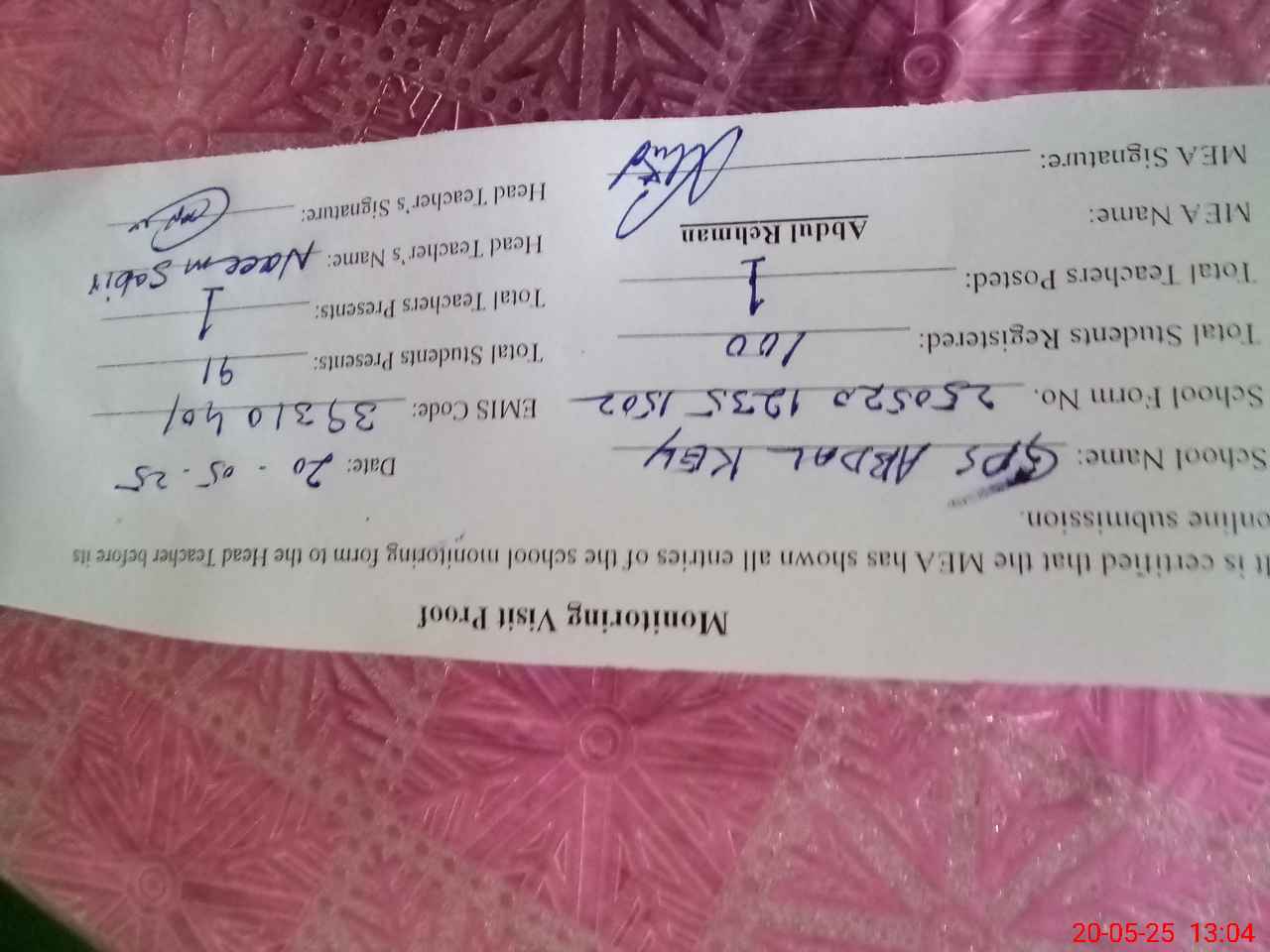 | EMIS Code: 39310401 | Name of School: GPS ABDAL KEY | |||