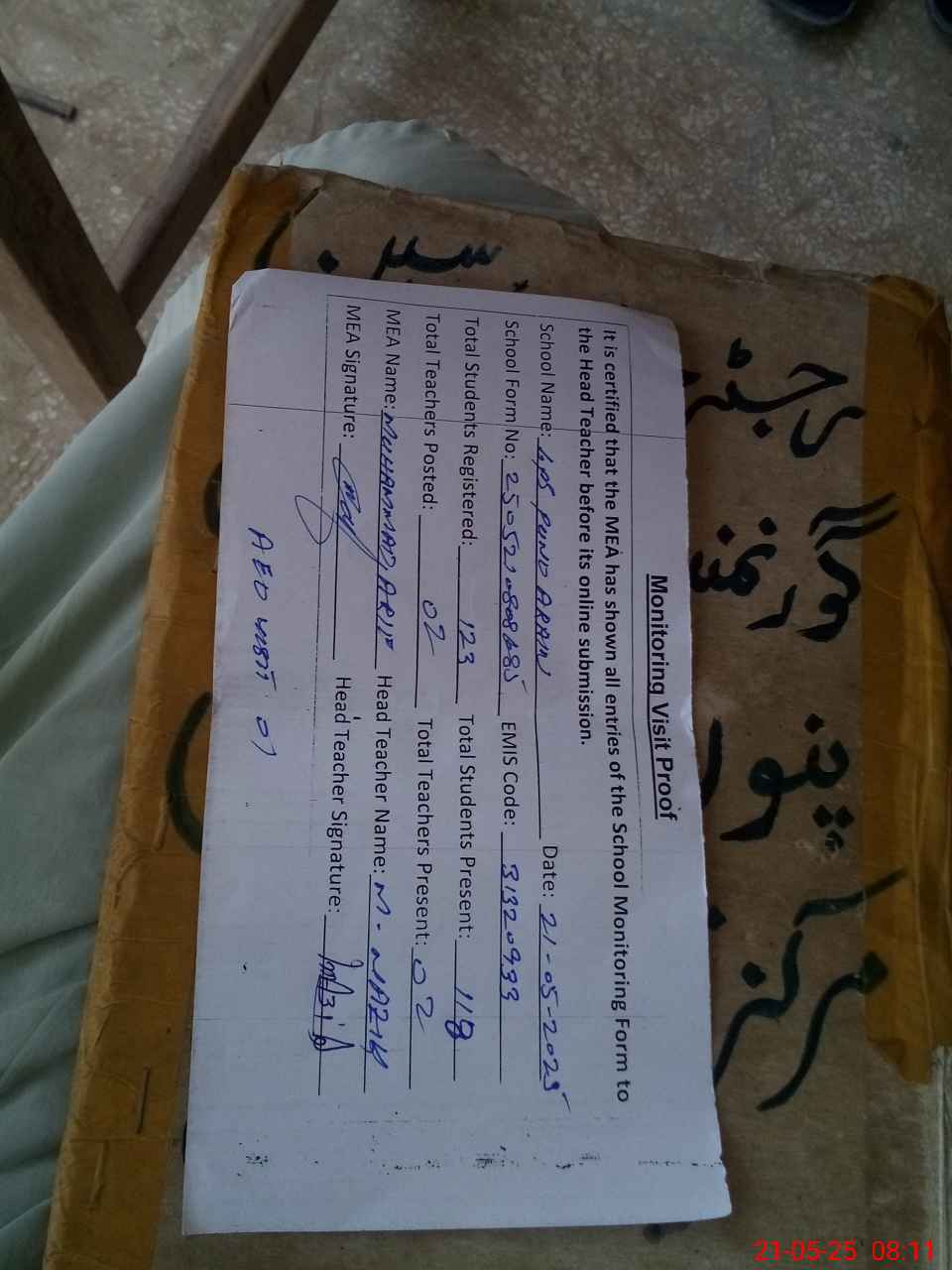 | EMIS Code: 31320933 | Name of School: GPS PUNU ARAIN | |||