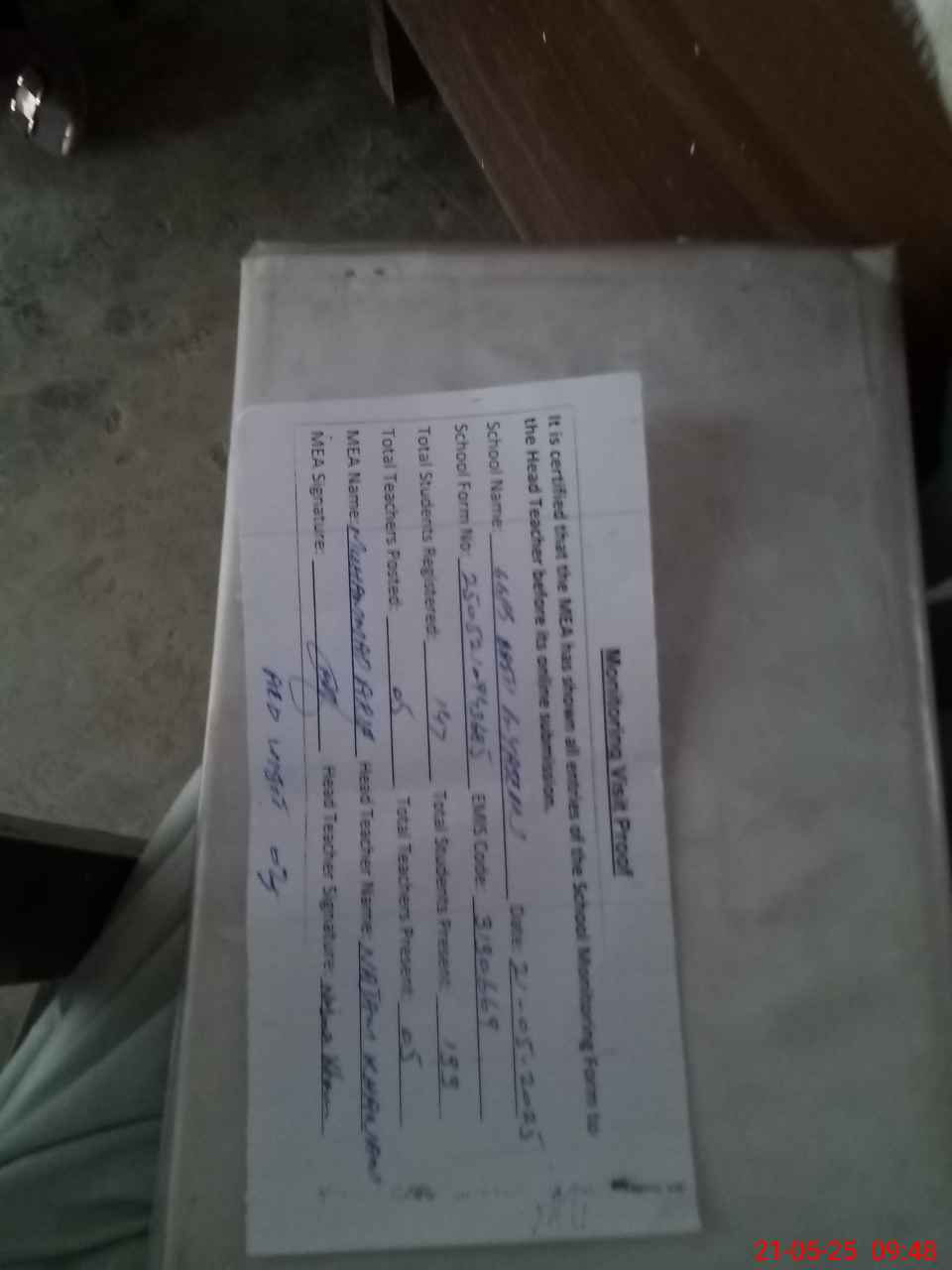 | Certified that this School was Inspected by the Undersigned MEA/DMO Today and the Information Stated Above is as Per Record. | |||||