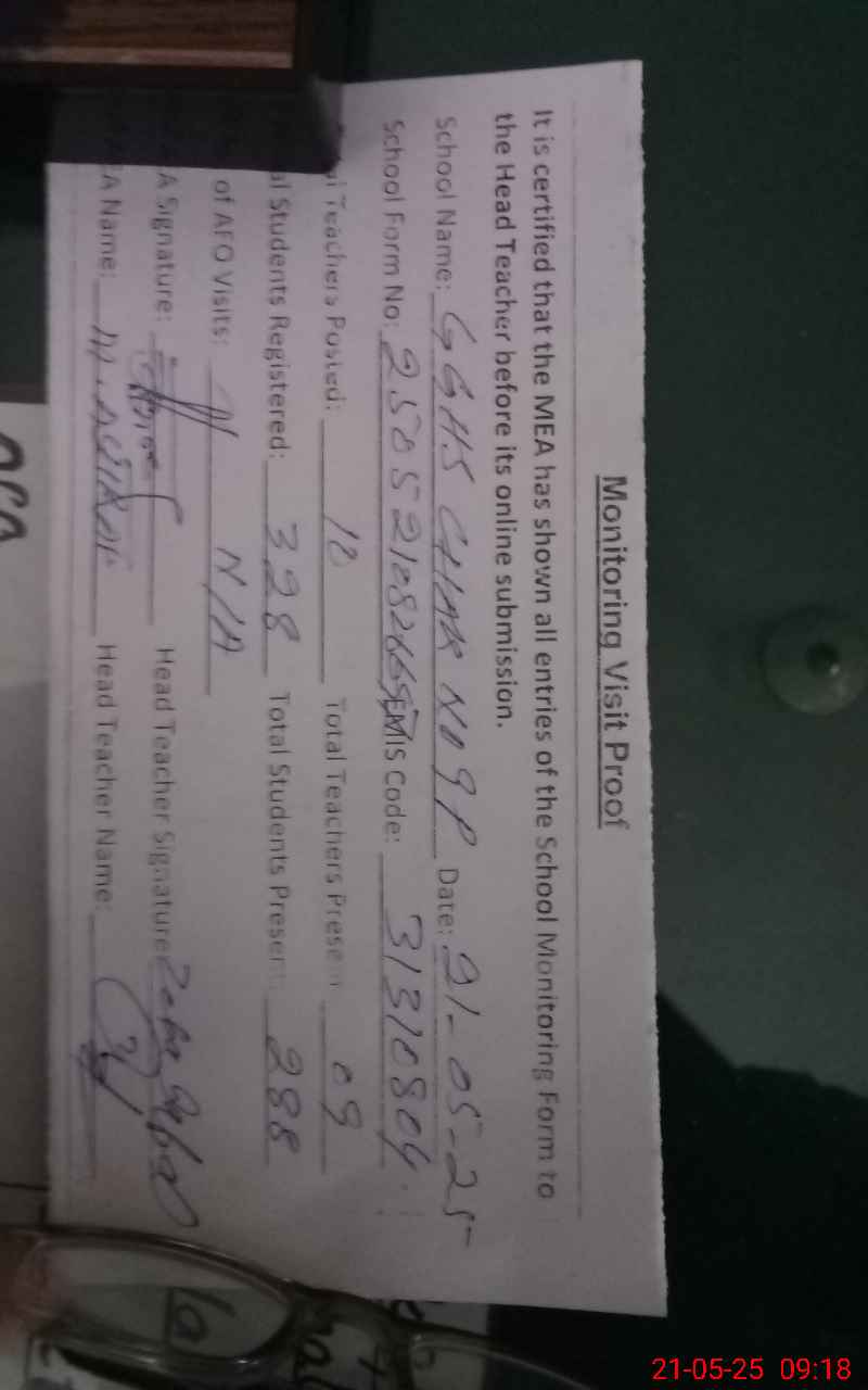 | EMIS Code: 31310804 | Name of School: GGHS CHAK NO. 9/P | |||