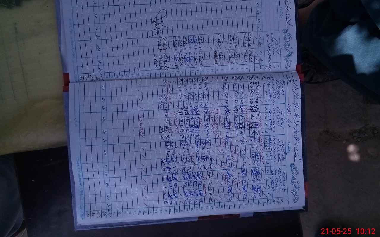 | CNIC | Full Name | Designation | R/C | Absence During Last Calender Month |