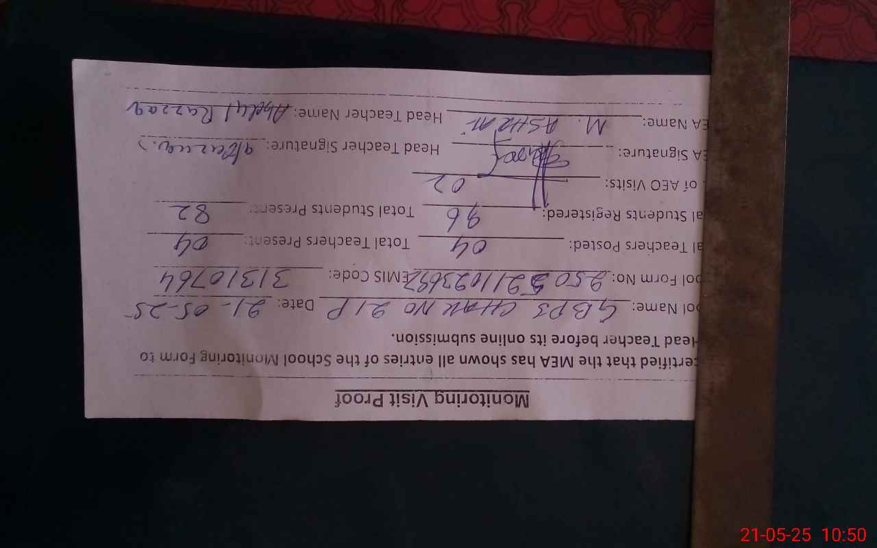 | Certified that this School was Inspected by the Undersigned MEA/DMO Today and the Information Stated Above is as Per Record. | |||||