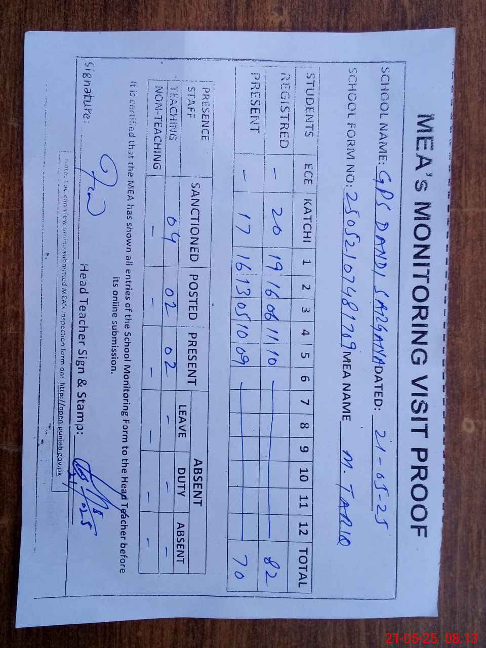 | EMIS Code: 36410248 | Name of School: GPS DANDI SARGANA, SARAI SIDHU | |||