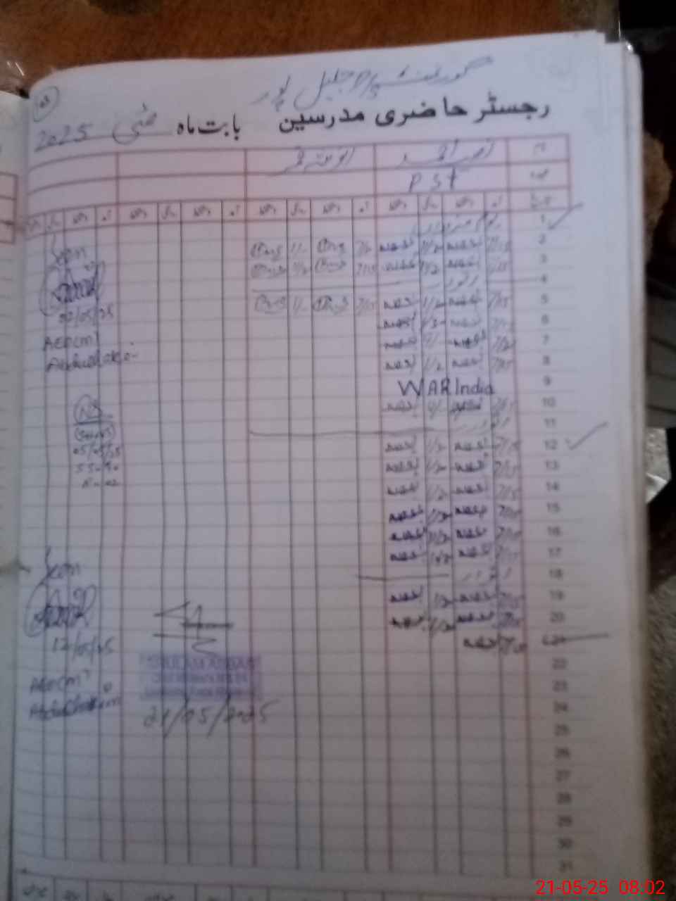 | CNIC | Full Name | Designation | R/C | Absence During Last Calender Month |