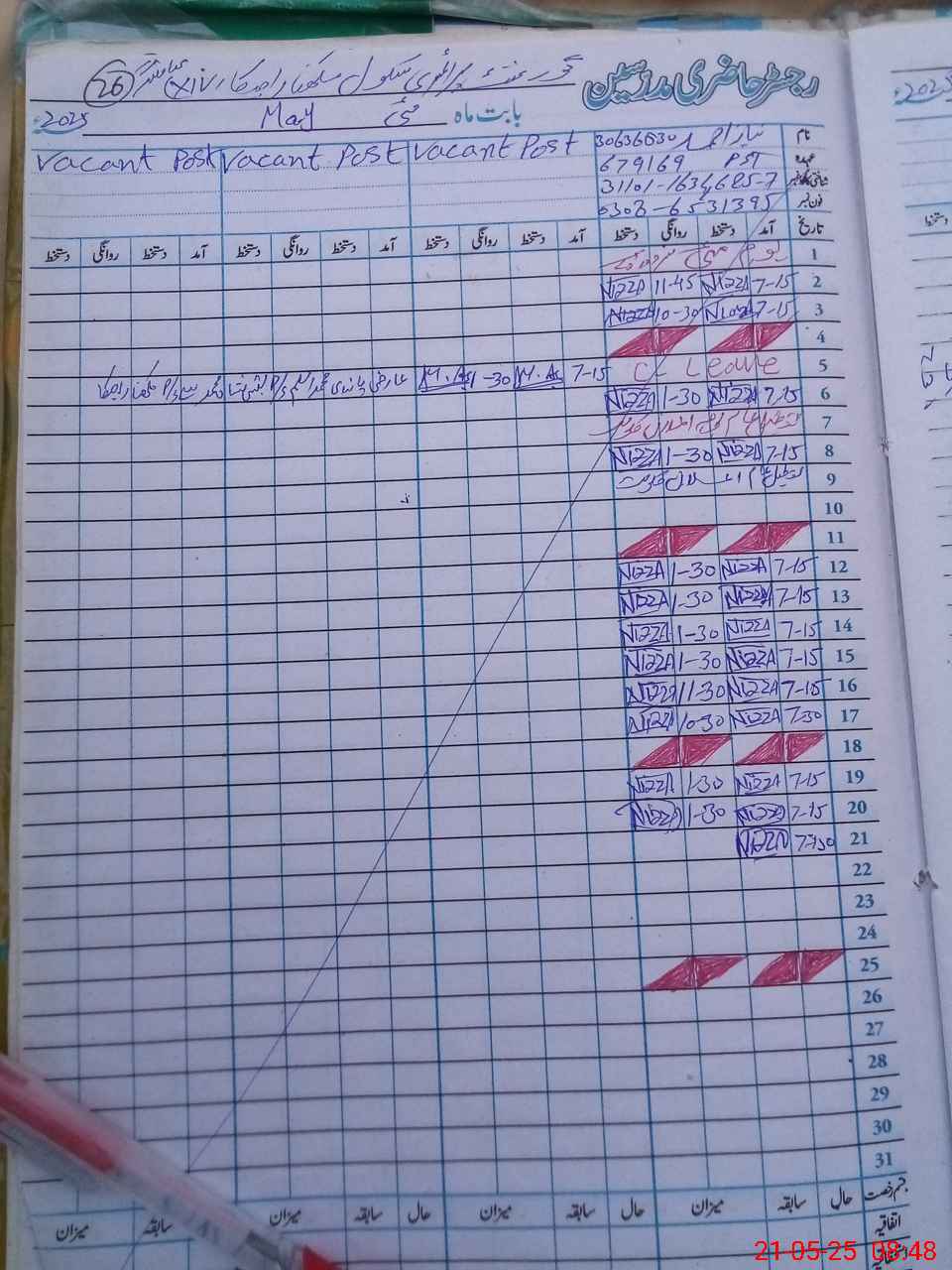 | CNIC | Full Name | Designation | R/C | Absence During Last Calender Month |