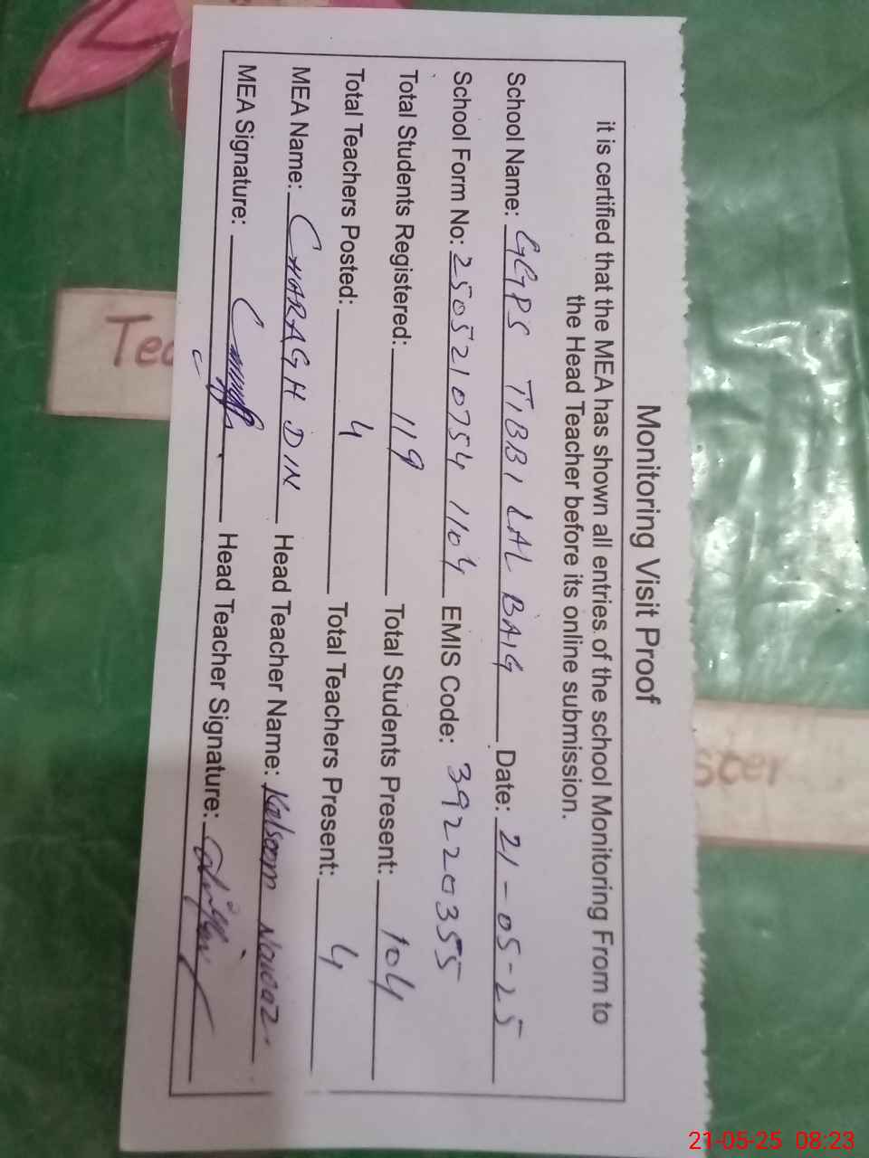 | EMIS Code: 39220355 | Name of School: GGPS TIBBI LAL BAIG | |||