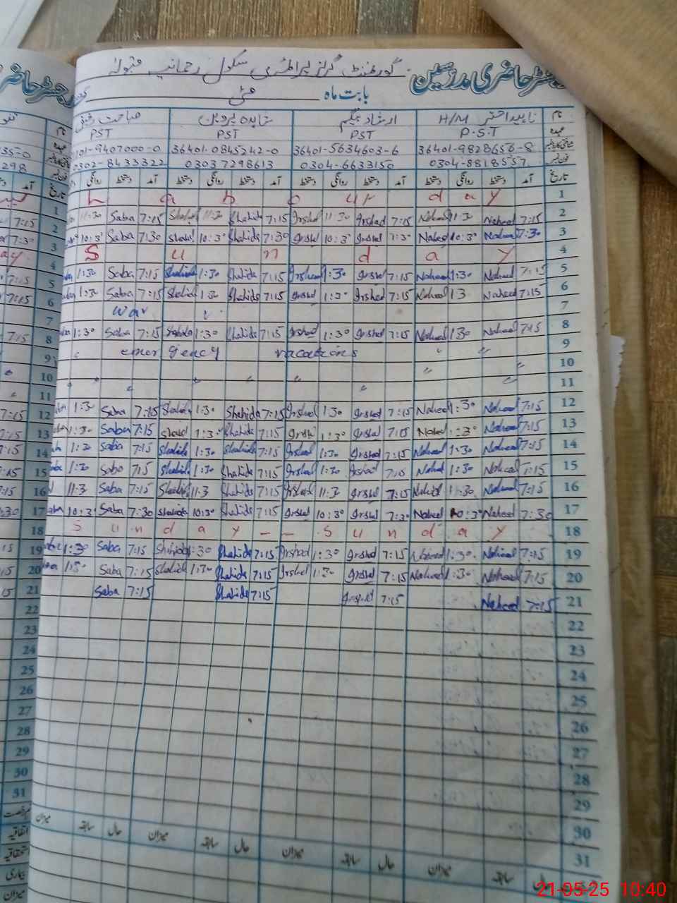 | Name: NA**** AK**** Designation: (School Headmaster's/Headmistress's) PST Phone/Cell Number: 03**** |