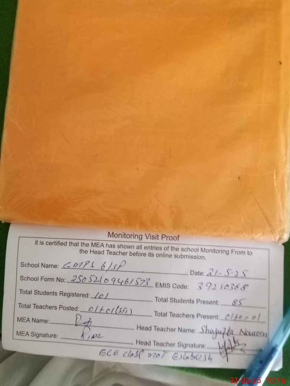 | EMIS Code: 39210368 | Name of School: GMPS 6/SP | |||