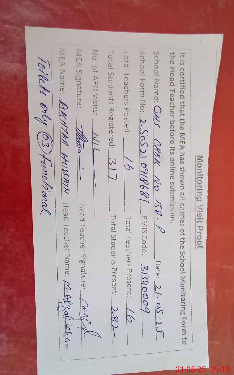 | EMIS Code: 31340009 | Name of School: GHS CHAK NO. 158/P | |||