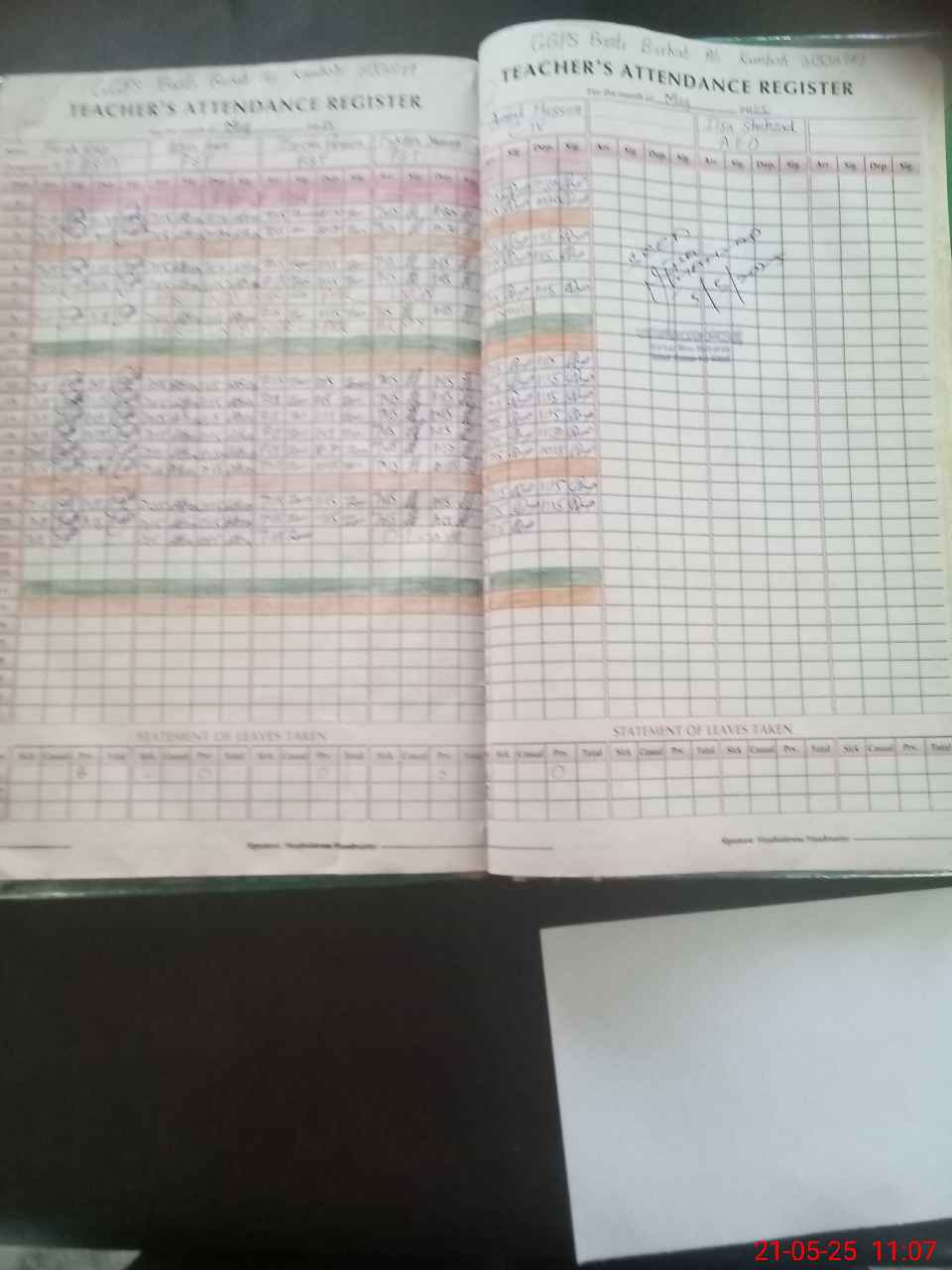 | Attendance Register | Head Teacher | MEA with School | Visit Proof |