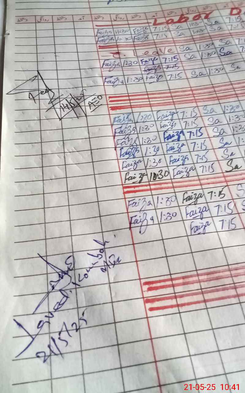 | CNIC | Full Name | Designation | R/C | Absence During Last Calender Month |