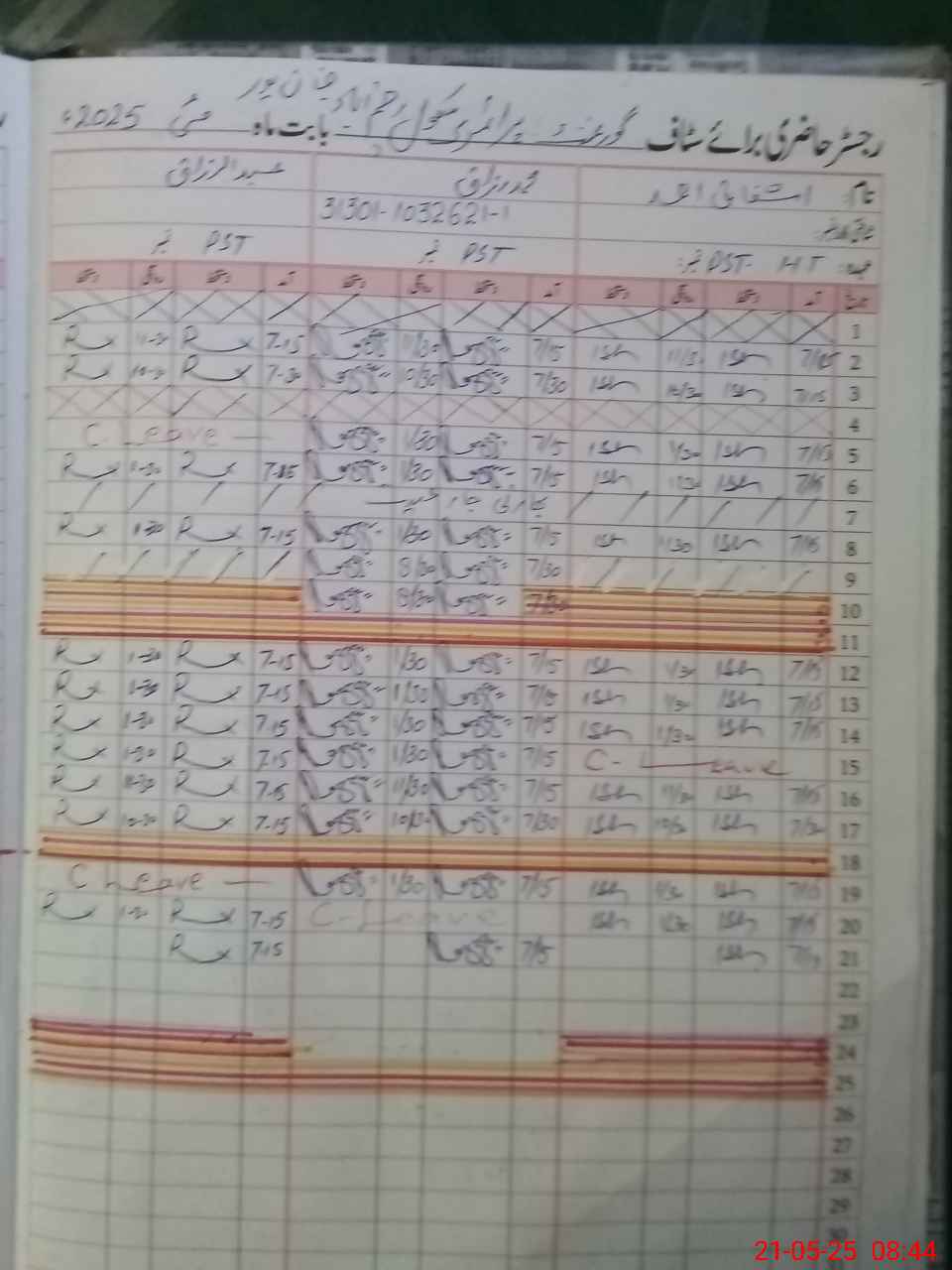 | CNIC | Full Name | Designation | R/C | Absence during last cal. month |